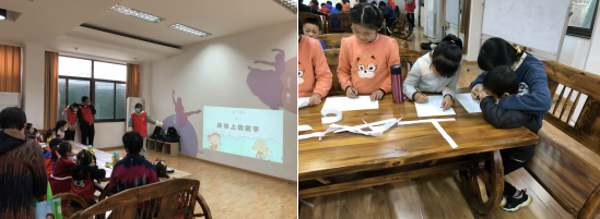 活動(dòng)在益智動(dòng)畫中拉開了序幕?,F(xiàn)場,志愿者老師采用循序漸進(jìn)的方式,以ppt為載體,帶領(lǐng)孩子們開展“平分蘋果醋”“關(guān)于硬幣的魔術(shù)”“鍥而不舍的青蛙”等游戲,讓孩子開動(dòng)大腦,從中體會(huì)頭腦風(fēng)暴帶來的快樂?;顒?dòng)始終圍繞“趣味數(shù)學(xué)”這一主題,但也穿插著“趣味數(shù)學(xué)故事”幫助孩子在激烈的頭腦風(fēng)暴后得到放松。期間,志愿者老師還用實(shí)驗(yàn)的方式提升孩子們的動(dòng)手能力,展現(xiàn)數(shù)學(xué)與其他學(xué)科及生活方方面面的聯(lián)系。活動(dòng)結(jié)束后,孩子們依依不舍,并紛紛表達(dá)自己對于此次趣味活動(dòng)的喜愛。活動(dòng)取得到了良好的效果,得到了孩子及家長的一致好評。
