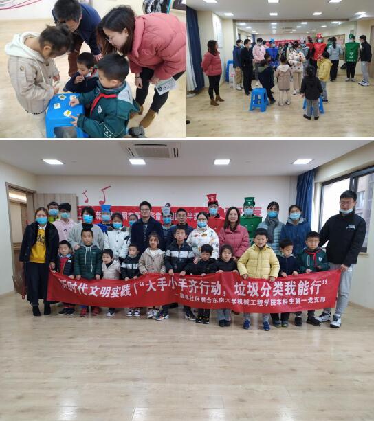 垃圾雖小,卻牽著民生,連著文明。日常生活中,每個(gè)人每天都會(huì)扔出許多垃圾,垃圾分類成為關(guān)系每一個(gè)人的話題。11月28日,江寧區(qū)秣陵街道殷巷社區(qū)新時(shí)代文明實(shí)踐站聯(lián)合東南大學(xué)機(jī)械工程學(xué)院本科生第一黨支部開(kāi)展了垃圾分類活動(dòng)。