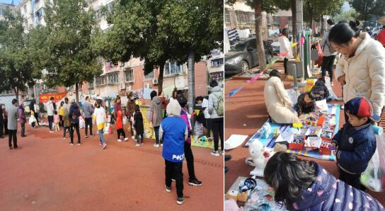 “你的多余,我的需要”一大早,各個家庭帶上了自己家的閑置物品,來到廣場擺起了小攤,每個家庭精心打扮自家的小攤,希望吸引更多的人前來挑選交換物品。大家還牽起了一根“共享衣繩”,把閑置的衣物掛起來,給小區(qū)里有需要的居民自取。