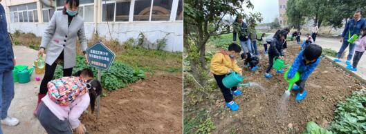 隨后,在志愿者的帶領(lǐng)下,大家來到社區(qū)蔬菜種植地,進(jìn)行蔬菜種植體驗(yàn)。在志愿者的講解中,大家相繼認(rèn)識了不同種類的蔬菜;除草、撿石頭、松土、施肥,最后為菜苗澆水,很快,裸露的土地就被種上了一棵棵綠色的菜苗,青少年們一個(gè)個(gè)累的氣喘吁吁,紛紛感嘆種植的不易。
