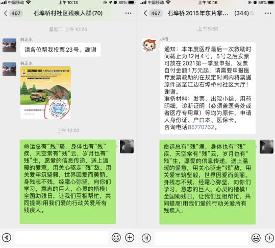 殘障人士因生理上的各種缺陷成為社會(huì)中特殊的弱勢(shì)群體,往往內(nèi)心封閉,與人保持距離。石埠橋村借助“掌上云社區(qū)”平臺(tái),積極開展各項(xiàng)工作,努力為殘疾人提供服務(wù),開展培訓(xùn)、義診、免費(fèi)發(fā)藥、健康體檢等活動(dòng)普及知識(shí),增進(jìn)社會(huì)對(duì)殘疾人的理解與支持?;顒?dòng)中,志愿者,以線上宣傳的方式,幫助他們克服自卑與自我封閉心理,引導(dǎo)他們?cè)谏鐣?huì)交往中學(xué)會(huì)相互尊重、相互幫扶,增強(qiáng)他們?nèi)后w歸屬感和人際信任感,重塑自我認(rèn)知,產(chǎn)生自我效能感,恢復(fù)部分社會(huì)交往功能,培養(yǎng)更多的親社會(huì)行為。同時(shí)呼吁社會(huì)各界關(guān)愛殘疾人,幫助他們進(jìn)行治療、康復(fù),享受冬日陽光的溫暖,進(jìn)而回歸社會(huì),提升生活信心和生活質(zhì)量。