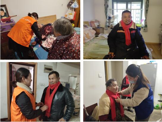 工作人員與殘疾老人親切交談,噓寒問暖,詳細(xì)詢問他們的生活狀況,鼓勵(lì)他們要有自強(qiáng)不息,對(duì)生活充滿希望,平日多出門走動(dòng),多參加火炬村舉辦的社區(qū)活動(dòng),有助于康復(fù),有什么困難及時(shí)向火炬村提出來,火炬村會(huì)盡力解決。特別是一條簡單的圍巾系在了他們的脖子上,無“圍”不至的關(guān)懷,讓這個(gè)冬天不太冷。