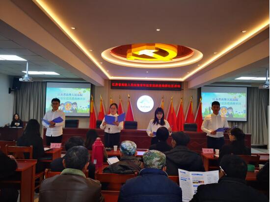 “我曾經(jīng)久久地注視,注視那本共和國憲法的封面,谷穗、齒輪、金色的五星,簇?fù)碇鴩障路傻牡氖崳瑥拇?,法在我心?.....”一首激情澎湃的《法律詩歌》朗誦拉開了活動的序幕。隨后,江蘇省高級人民法院青年法官結(jié)緊緊圍繞“小案例”見“大守護”這個主題,結(jié)合社區(qū)居民日常生活息息相關(guān)的如見義勇為、未成年人打賞主播、老人自主選擇監(jiān)護人等相關(guān)案例為尚橋社區(qū)的居民群眾帶來一場別開生面的法律知識宣講。法官的宣講生動幽默、實用性強,居民群眾紛紛認(rèn)真聆聽,現(xiàn)場學(xué)習(xí)氛圍十分濃厚。