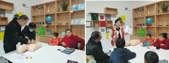 人體是由多種器官構(gòu)成的,不同的器官在人體內(nèi)發(fā)揮著不同的重要作用。課上,老師先帶領(lǐng)孩子們閱讀相關(guān)繪本并講解了人體構(gòu)造的原理以及人體所需的營養(yǎng)元素,讓小朋友們有了一個(gè)初步的認(rèn)識(shí)和理解,然后老師拿出準(zhǔn)備好的模型及材料,小朋友們在老師們的指導(dǎo)下在模板上制作自己喜歡的各種小模型。在現(xiàn)場展示人體構(gòu)造環(huán)節(jié),小朋友們紛紛恍然大悟:“原來我們身體里面,居然有如此大的秘密!”。認(rèn)識(shí)完人體后,老師現(xiàn)場示范了心肺復(fù)蘇,先檢查口腔是否有異物、通過兩胸連線的中點(diǎn)確定好正確的按壓位置、雙手交叉擺放進(jìn)行按壓,老師詳細(xì)講解了心肺復(fù)蘇按壓過程。紙上得來終覺淺,絕知此事要躬行,在老師的指導(dǎo)下,在座家長輪番進(jìn)行心肺復(fù)蘇。