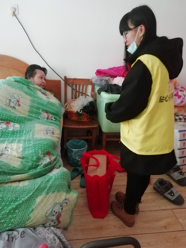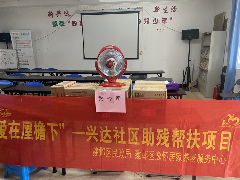 楊某與母親均為興達(dá)社區(qū)智力殘障居民,母親還伴有中風(fēng),常年臥病在床,家里只有父親是唯一的正常人士,在照顧母子倆生活的間隙靠打零工維持家用,家庭條件及其艱苦。隨著冬季的到來,氣溫逐漸下降,在寒冷的冬季能夠有一個取暖器給癱瘓?jiān)诖驳钠拮尤∨彩呛苌莩薜氖虑椤?2月5日,興達(dá)社區(qū)聯(lián)合“愛在屋檐下”項(xiàng)目組為楊磊這樣的困難殘疾人家庭送來了小太陽取暖器,用愛心、細(xì)心、關(guān)心接力讓冬季不再寒冷。