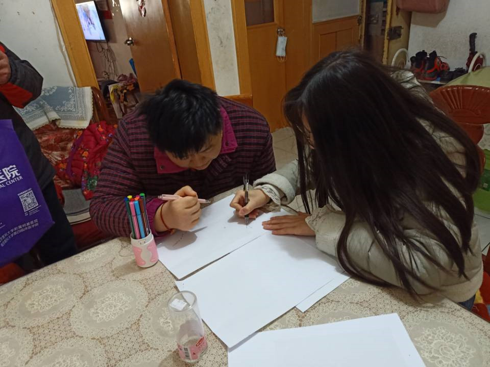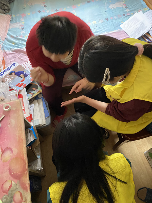 林姑娘,興達(dá)社區(qū)智力殘障居民,年齡26歲。林媽媽一直有一個心愿,希望自己的女兒能夠與同齡人進(jìn)行一些互動和交流,社區(qū)范書記得知此情況后聯(lián)合“愛在屋檐下”項(xiàng)目組積極對接了南京師范大學(xué)馬克思學(xué)院的志愿者們結(jié)合林倩的特殊情況制定了一系列陪伴計(jì)劃,學(xué)習(xí)、畫畫、做手工……每到周末,志愿者的準(zhǔn)時陪伴讓林倩的生活充滿了陽光。
