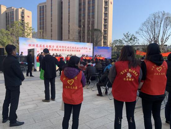 為全面普及防災(zāi)減災(zāi)知識(shí),深入開展防災(zāi)減災(zāi)知識(shí)宣傳工作,提高防災(zāi)減災(zāi)意識(shí),自救互救能力,營(yíng)造良好的社區(qū)學(xué)習(xí)氛圍,12月4日,棲霞區(qū)減災(zāi)委辦公室聯(lián)合棲霞區(qū)紅十字會(huì)舉行的防災(zāi)減災(zāi)知識(shí)競(jìng)賽在石埠灣花園小區(qū)云霞居廣場(chǎng)舉行。