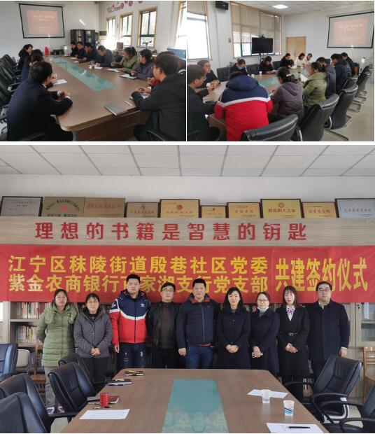 為加強(qiáng)村銀聯(lián)動,加強(qiáng)黨建學(xué)習(xí),構(gòu)建長期互助機(jī)制,實(shí)施鄉(xiāng)村振興戰(zhàn)略、率先基本實(shí)現(xiàn)農(nóng)業(yè)農(nóng)村現(xiàn)代化奠定堅(jiān)實(shí)基礎(chǔ),12月17日上午,江寧區(qū)秣陵街道殷巷社區(qū)黨委與紫金農(nóng)商銀行百家湖支行黨支部達(dá)成共建意向,舉辦簽約活動,并舉行了第一次主題黨日活動。