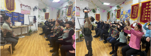 活動(dòng)現(xiàn)場(chǎng),社區(qū)邀請(qǐng)到霎哈嘉冥想瑜伽的木筆老師前來給老人們做拍打和自覺。霎哈嘉瑜伽為錫呂·瑪塔吉女士所創(chuàng),她幾乎以全部時(shí)間四處傳揚(yáng)霎哈嘉瑜伽這種靜坐法,從不收費(fèi),讓人類可以集體大規(guī)模地得到自覺,發(fā)展身心健康。現(xiàn)在霎哈嘉瑜伽現(xiàn)巳在全球五大洲流傳,共有近108國巳設(shè)有靜坐班。老人們?cè)诶蠋煹膸ьI(lǐng)下,體驗(yàn)了“九步自覺法”,并且靜心冥想了二十分鐘,都感覺到身心舒暢。老師還跟老人們分享了鹽水泡腳法,討論了“瑜伽”的含義,大家都覺得受益良多。