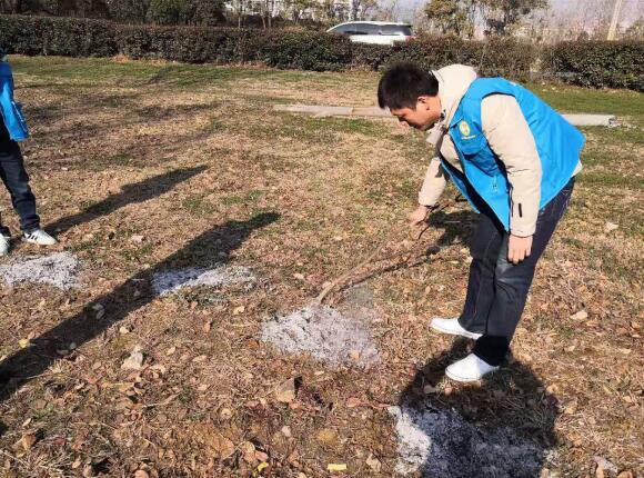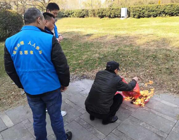 行動中,志愿者穿著藍(lán)馬甲來到花港北路南灣營公園進(jìn)行巡查。首先與正在準(zhǔn)備祭祀和已經(jīng)開始祭祀的群眾溝通交流,向群眾普及森林防火知識,提醒群眾在祭祀結(jié)束后仔細(xì)檢查灰燼堆,避免有火星存留,造成森林火災(zāi)隱患。隨后用枯樹枝認(rèn)真檢查了已經(jīng)祭祀完畢的灰燼堆,經(jīng)過兩個多小時的巡查,有效降低了森林火災(zāi)的風(fēng)險。