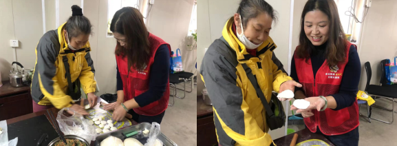 活動開始,志愿者先簡單介紹了活動內(nèi)容和流程,讓大家有一個大致的了解;并講解一些常見面食的制作技巧,從和面等步驟開始,手把手地教大家如何做出美味的面食。現(xiàn)場,大家躍躍欲試,紛紛開始搟面、做餡料……在實踐中一點(diǎn)點(diǎn)進(jìn)步,不一會兒,一個個瑩潤飽滿的餃子就整齊地碼滿了盤子,大家臉上都洋溢著幸福、自豪的笑容。