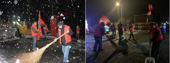 針對(duì)當(dāng)前的降雪天氣,鶴齡社區(qū)全體工作人員迅速進(jìn)入“戰(zhàn)時(shí)”狀態(tài),提前籌劃部署,確保人員物資、機(jī)械設(shè)備全部到位,并迅速高效地組織好本轄區(qū)掃雪防凍工作,以及農(nóng)業(yè)大棚、危舊房屋、老舊小區(qū)等隱患排查工作。夜晚,在朦朧的夜色中,志愿者及時(shí)將影響道路出行安全的積雪進(jìn)行掃除,防止路面出現(xiàn)結(jié)冰現(xiàn)象。白天,迎著熹微的晨光,志愿者巡查路面結(jié)冰情況快速將路面結(jié)冰道路進(jìn)行融雪除冰措施。就這樣鶴齡社區(qū)工作人員在“白+黑”24小時(shí)值班工作中,用行動(dòng)為居民群眾掃出一條安全便捷的出行道路。