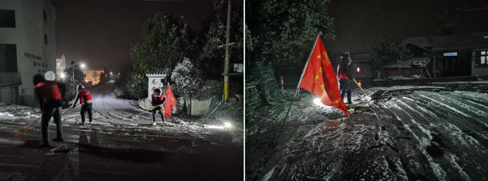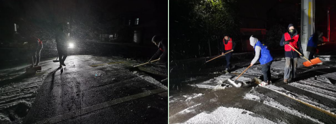 在第一片雪花落地之前,紅旗村早已做好充分的準(zhǔn)備,以“機(jī)械除雪為主、融雪劑融雪為輔”的原則,提前準(zhǔn)備了工業(yè)鹽、雪鏟等材料設(shè)備。深夜,村里啟動(dòng)應(yīng)急預(yù)案,黨員、網(wǎng)格員和志愿者們冒著嚴(yán)寒,在村內(nèi)的主次干道鏟雪,并在樓道、商鋪門(mén)口和公交站臺(tái)鋪設(shè)草墊,防止路人滑倒。接到村民家中緊急的冰凍、漏水情況,迅速安排人員上門(mén)解決問(wèn)題,受到村民們的一致好評(píng)。