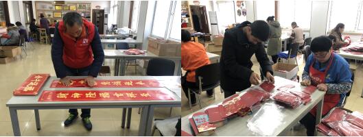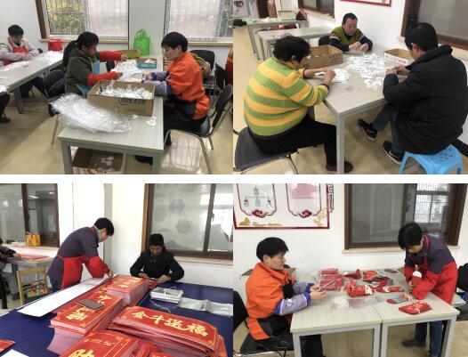 盡管年關(guān)已近,五福家園的殘疾人之家依舊忙碌,剛走進(jìn)里面,遍地的紅色便映入了眼簾。據(jù)了解,五福家園社區(qū)黨委充分調(diào)研市場(chǎng),精準(zhǔn)對(duì)接需求。新年即將到來(lái),市場(chǎng)上春聯(lián)、紅包、新年日歷等需求大增,殘疾人之家專職委員特意引進(jìn)了這些新產(chǎn)品進(jìn)行加工,提高殘疾人收入的同時(shí),更讓精神智力殘疾人一起加入到產(chǎn)品加工中,促進(jìn)了社會(huì)殘健融合。紅色的對(duì)聯(lián)加上火熱的干事氛圍讓這個(gè)殘疾人之家遍布著火紅的基調(diào)。