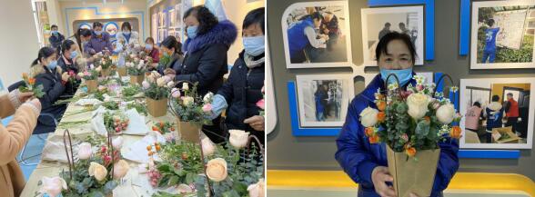 插花環(huán)節(jié),花藝?yán)蠋煆牟寤ㄋ囆g(shù)的基礎(chǔ)知識(shí)、工具使用、插花造型、色彩搭配等方面進(jìn)行了深入淺出的講解和演示,居民們都仔細(xì)聆聽,細(xì)致觀摩,看到鮮艷的花朵像變魔術(shù)似的擺出各種造型,都禁不住躍躍欲試。插花過程中,大家精心地裝飾著自己手中的美麗花籃。在歡聲笑語中,一件件美麗的花卉作品呈現(xiàn)出來,一邊展示自己的成果,一邊欣賞著別人的作品,這是一場(chǎng)視覺的盛宴。最后大家一起捧著自己的作品合影,記錄下這一美好的瞬間。