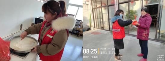 一大早,志愿者們就帶著精心熬制的臘八粥,來到老人家中走訪慰問,為有需要的老人提供血壓血糖測量服務(wù),并為在一月生日的老人送上“長壽面”和“團圓蛋”。“喝上一碗臘八粥,來年行好運。”接過志愿者們送上的熱氣騰騰的臘八粥,王化香奶奶迫不及待的嘗了一口,“味道真好,香香的很好喝。”王奶奶笑著告訴志愿者,最近疫情,她一般不怎么出門,但看到志愿者們上門請她喝臘八粥,還要為她過生日,她說什么都要多跟志愿者們聊上幾句。