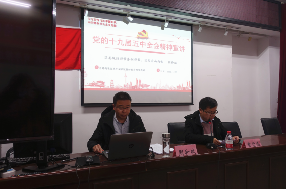 1月22日下午,南京市棲霞區(qū)委統(tǒng)戰(zhàn)部常務(wù)副部長、區(qū)民宗局局長周和斌來到馬群街道百水芊城社區(qū)宣講黨的十九屆五中全會精神,推動黨的十九屆五中全會精神深入基層、深入群眾、深入人心。