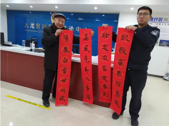 疫情還在發(fā)展,形勢(shì)仍然嚴(yán)峻,在生死時(shí)速的生命通道上有一群無懼逆行的勇士用行動(dòng)不斷前行。也有一束暖陽溫暖著逆行者。帶著“沉甸甸”的春聯(lián)和福字,志愿者與一線服務(wù)站點(diǎn)人員親切交流,了解疫情排查、上崗保障等情況,對(duì)投身疫情防控第一線的職工們表達(dá)了敬意,叮囑他們?cè)趫?jiān)守崗位的同時(shí),要做好自身防護(hù),再接再厲,堅(jiān)決打贏疫情防控阻擊戰(zhàn)殲滅戰(zhàn)。一幅幅寓意吉祥的春聯(lián),一張張喜氣洋洋的大“福”字、“壽”字,免費(fèi)分發(fā)到一線服務(wù)站點(diǎn)人員手中,把美好的節(jié)日祝福送給大家,讓每個(gè)人提前感受到了濃濃的年味兒,溫暖一線服務(wù)站點(diǎn)人員心窩里。