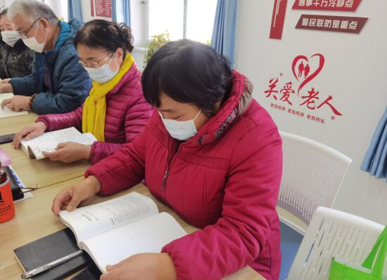 1月20日上午,南京市棲霞區(qū)堯化街道堯石二村社區(qū)實(shí)華老黨員工作室中傳來(lái)陣陣讀書聲。原來(lái),是巾幗老黨員袁桂榮正在組織大家開(kāi)展全民閱讀書香活動(dòng)。