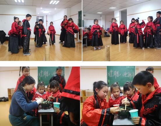 臘八節(jié)快到了,春節(jié)也要來(lái)了,歲末冬寒,用歡樂迎接新年,以美好抵御寒冬。穿漢服、誦讀三字經(jīng)、投壺、夾銅錢等一系列的傳統(tǒng)文化體驗(yàn)活動(dòng),讓孩子們置身其中,在了解傳統(tǒng)習(xí)俗的同時(shí),收獲別樣的歡樂。窗外的寒冬有冷風(fēng),屋內(nèi)卻有如春的風(fēng)景,在這短暫的童年時(shí)光里,盡情的享受著屬于他們的歡樂,即使是苦惱也表現(xiàn)的如此痛快淋漓,沉浸在一場(chǎng)比賽、一次投壺、一次挑戰(zhàn),專注于每一次的欣喜若狂與失誤沮喪。