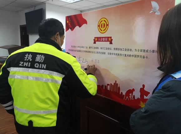 參加入會的外賣小哥、保潔工人、輔警等戶外工作者依次填寫入會申請并在入會誓詞上簽字。外賣小哥李志方說,“感謝工會對我們基層一線職工的關心支持,也很高興加入工會這個大家庭,讓我們這些戶外工作者有了一個共同的家,我將同全區(qū)各行各業(yè)的職工朋友們一起立足本職,團結互助,把企業(yè)當成自己的家,把工會當成自己的家,愛企業(yè)、愛工會,做個好職工、好會員,為經(jīng)濟發(fā)展貢獻自己的一份力量”。隨后,工會主席為他們送上禮品,讓他們切實滿足了小小的心愿,點亮了他們對未來的信心。新會員們帶著對新年的美好期盼,朝著幸福的生活繼續(xù)努力工作。
