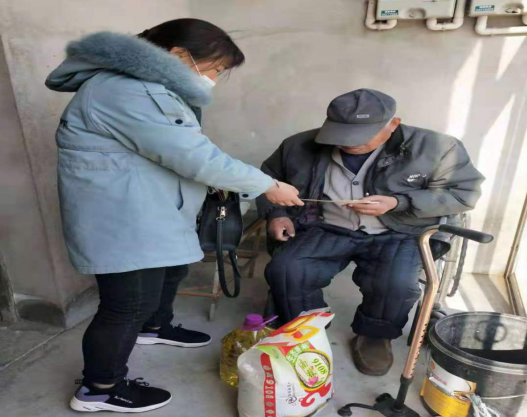 隨后,在書記的帶領(lǐng)下,黃橋村新時(shí)代文明實(shí)踐志愿者們拿著口罩、新鮮出爐的“福”字、棉被及大米等慰問品來到轄區(qū)困難戶的家中,提前為困難老人送上新春的祝福,詳細(xì)了解他們的生活情況、身體狀況,詢問他們當(dāng)前的需求和急需解決的困難,叮囑他們要戴好口罩,做好個(gè)人防護(hù)工作,鼓勵(lì)他們要堅(jiān)定信心,以積極樂觀的心態(tài)面對(duì)生活,同時(shí)交代隨行工作人員,要時(shí)刻關(guān)注困難老人的生活情況,幫助他們解決實(shí)際的困難和問題。