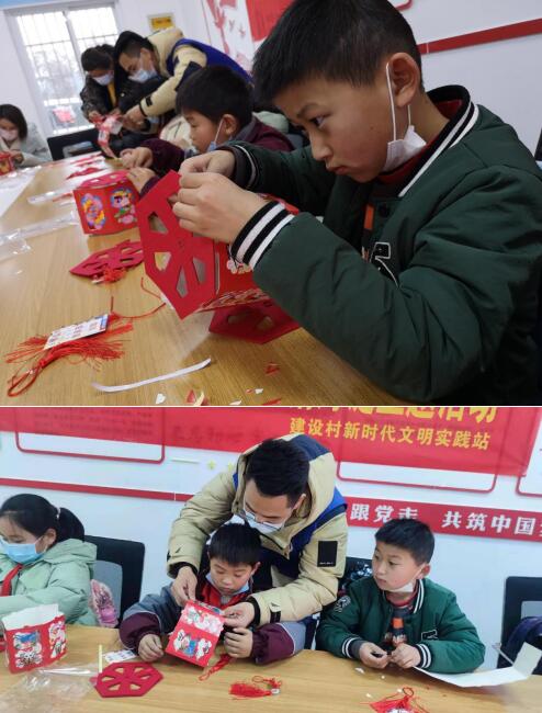 借著同學們高漲的熱情,隨后又進行了猜燈謎的游戲。“一個小姑娘,生在水中央,身穿粉紅衫,坐在綠船上。大家知道是什么嗎?”孩子們紛紛舉手說出自己的答案。趣味猜燈謎活動如火如荼地進行著,大家都沉浸在了活躍的氣氛里。元宵節(jié)也少不了做燈籠,孩子們在家長及志愿者的協(xié)助下,利用社區(qū)準備的材料邊學邊做,模樣十分專注。不一會兒,一個個小紅燈籠就在一雙雙小手中逐漸成型。孩子們拎著自己親手做的小燈籠,開心極了。