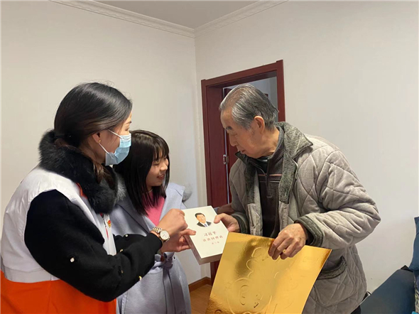 “今年的黨員冬訓(xùn)已經(jīng)開(kāi)始了,這是支部為您準(zhǔn)備的學(xué)習(xí)資料。”黨員志愿者送上了新年掛歷、湯圓等節(jié)日禮物,“今天是元宵節(jié),特地為您準(zhǔn)備了一份我們剛包的湯圓,給您全家拜個(gè)晚年了。”“雖然我行動(dòng)不便,不能和大家一起上黨課,但是黨員冬訓(xùn)我還是不能落下的,也謝謝支部的節(jié)日祝福。”黨員賈定金說(shuō)道。