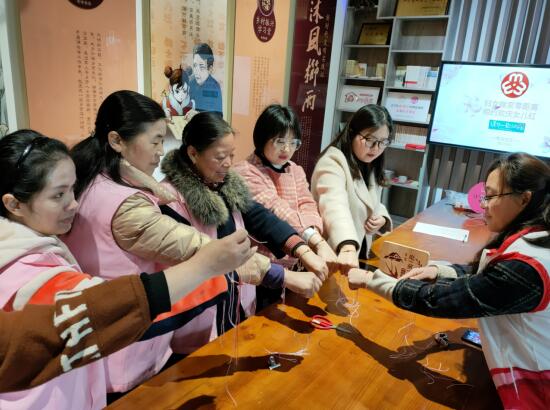 活動伊始,工作人員組織社區(qū)女性居民觀看了婦女“兩癌”防治知識系列科普片,為宮頸癌、乳腺癌的相關(guān)知識普及和防治進(jìn)行大力宣傳,得到了大家的積極響應(yīng),紛紛表示會養(yǎng)成定期檢查的良好習(xí)慣。在工作人員的耐心指導(dǎo)下,大家還一起學(xué)習(xí)制作了“小紅花”編繩手鏈。大家依據(jù)自己的審美,選取自己喜歡的彩繩和配飾,按照步驟一點(diǎn)點(diǎn)地認(rèn)真編織,不一會兒,一根根各具特色的小紅花手環(huán)就在大家的巧手下呈現(xiàn)出來,手環(huán)與居民們燦爛的笑容交相輝映,把大家的臉龐襯得更加美麗。與此同時(shí),社區(qū)婦聯(lián)代表給社區(qū)退休婦女主任、主席也送去了節(jié)日的祝福與慰問,陪伴她們聊天解悶。在交談中,詳細(xì)了解了她們的飲食起居與健康情況,并簡要介紹了社區(qū)婦聯(lián)過去一年的工作實(shí)績,誠懇地征求她們的意見和建議。退休女主任、主席對代表們的親自看望表示了由衷的謝意,也對婦聯(lián)工作賦予了更高期望。
