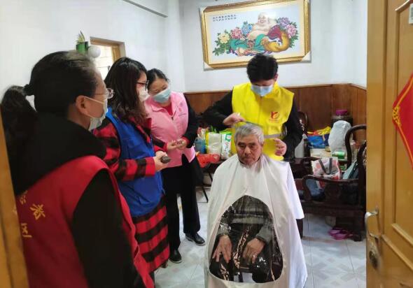 社區(qū)邀請(qǐng)了轄區(qū)內(nèi)的理發(fā)商戶共同參與活動(dòng),獻(xiàn)出愛心,免費(fèi)為老人們提供理發(fā)、縫紉修補(bǔ)衣物和義診等多項(xiàng)服務(wù)。對(duì)于行動(dòng)不便的老人,時(shí)間銀行志愿者們還專門上門為其理發(fā)、收拾房間。