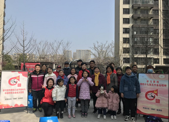“引導(dǎo)參加廣大黨員干部群眾知史愛黨、知史愛國,在黨史學(xué)習(xí)中不斷汲取前進的智慧和力量”----活動以志愿者老師趙仁靜的《中國黨史之重要歷史時刻 》黨史宣講拉開序幕。接著,志愿者的一首《唱支山歌給黨聽》,譜寫著華夏不朽的篇章,一百年的光輝歷程,篆刻著中國共產(chǎn)黨的膽略和英明;《紅心照我去戰(zhàn)斗》更是刻畫了革命后代如雄鷹搏風(fēng)雨、展翅飛、挑重擔(dān)、永向前的成長經(jīng)歷。秣陵街道雙金社區(qū)“板凳課堂”的小小志愿者用快板《黨的十九屆五中全會精神放光芒》這樣一首贊歌送給黨。