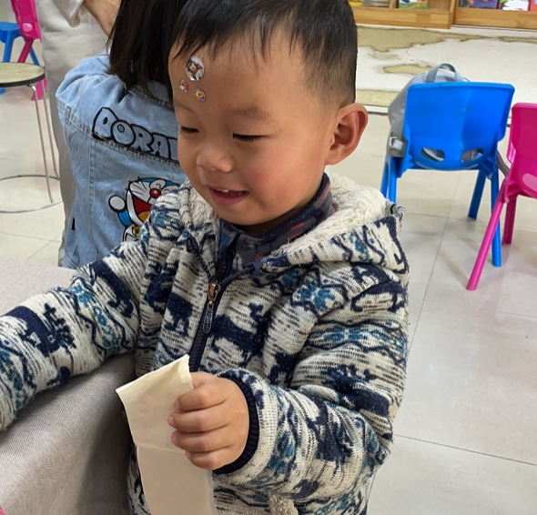 活動(dòng)中,中心老師引導(dǎo)家長(zhǎng)、幼兒進(jìn)行了熱身活動(dòng)“魔袋尋寶”,組織大家通過(guò)“拉紅繩”的形式進(jìn)行分組,相互分工合作,很快就找到“寶藏”并順利完成任務(wù)。熱身游戲后的“手工剪紙做手工”環(huán)節(jié),志愿者為所有幼兒派發(fā)彩紙、剪刀、膠水等工具,并逐一示范每個(gè)操作步驟,“上下對(duì)折、左右對(duì)折、沿著虛線折......”幼兒們聽(tīng)得格外認(rèn)真,個(gè)個(gè)都是躍躍欲試、大顯身手的模樣,迫不及待地?cái)[弄起手中的彩紙。在志愿者和家長(zhǎng)的幫助下,幼兒們順利完成了自己的作品,自豪地向小伙伴炫耀起來(lái)?;顒?dòng)的最后,家長(zhǎng)們跟著老師的指令帶著孩子們做起身體運(yùn)動(dòng),隨著歡樂(lè)的音樂(lè),拍拍手、跺跺腳,轉(zhuǎn)圈圈…孩子們都開(kāi)心極了,臉上洋溢著快樂(lè)的笑容。