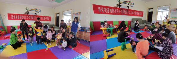 活動開始,社區(qū)志愿者通過帶孩子們跳舞等環(huán)節(jié)讓孩子們熟悉新的環(huán)境,平復(fù)緊張的情緒。隨后,志愿者根據(jù)根據(jù)孩子的年齡特點(diǎn)精心設(shè)計(jì)了不同的集體親子活動內(nèi)容,有手工繪畫制作、律動、鉆山洞等。孩子們在愉快的游戲中促進(jìn)其動作技能、語言、行為習(xí)慣、社交等方面的發(fā)展,志愿者在活動中對家長進(jìn)行指導(dǎo),教他們在家里如何完成這些親子活動,為家長解答育兒困惑,家長們感到受益匪淺。