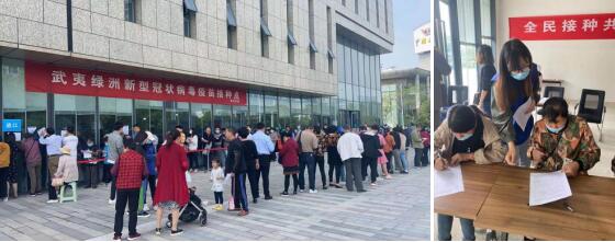在武夷綠洲新型冠狀病毒疫苗接種點(diǎn)的門口,居民群眾現(xiàn)場排隊等候登記與接種。“您好,最近身體還好吧?”、“有沒有禁忌癥?”、“請您確認(rèn)簽字”……每一位被接種者的建檔注冊、健康咨詢、禁忌癥確認(rèn)、知情告知等,醫(yī)護(hù)人員都耐心地進(jìn)行詢問。在疫苗接種工作臺前,社區(qū)網(wǎng)格員和疫苗接種人員各司其職,詢問、取苗、接種、填卡,看似機(jī)械化的作業(yè),無不是責(zé)任與細(xì)致的環(huán)環(huán)相扣。在社區(qū)與疫苗接種人員的齊心協(xié)力下,6日接種劑次為637針,7日接種劑次達(dá)1000針,橋頭社區(qū)的疫苗接種工作取得了階段性的良好成效。