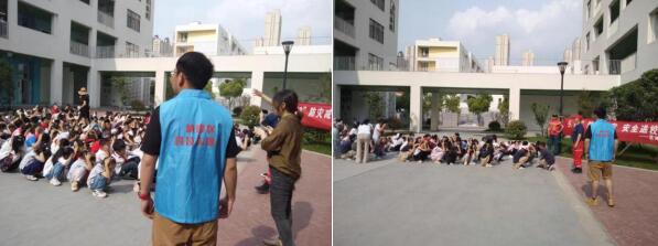 演練現(xiàn)場(chǎng)模擬教學(xué)樓起火,隨著火災(zāi)信號(hào)響起,疏散演練正式開(kāi)始。發(fā)現(xiàn)火情后,學(xué)校第一時(shí)間撥打火警“119”報(bào)警,同時(shí)立即啟動(dòng)應(yīng)急疏散預(yù)案,組織師生沿著預(yù)定路線,彎腰、捂鼻,快速撤離到操場(chǎng)上指定的安全地帶。整個(gè)演練過(guò)程嚴(yán)肅認(rèn)真,有序高效,達(dá)到了預(yù)期效果。“發(fā)生火災(zāi)時(shí),有毒煙氣是最大的殺手。你們背的這個(gè)叫做正壓式空氣呼吸器,大家可以把它理解為氧氣瓶……”活動(dòng)現(xiàn)場(chǎng),電瓷社區(qū)工作人員還為師生們科普了消防器材的使用方法和操作步驟,通過(guò)直觀的實(shí)踐感知,增強(qiáng)了學(xué)生火災(zāi)預(yù)防和火災(zāi)發(fā)生時(shí)的自救常識(shí)和自我營(yíng)救能力的培養(yǎng)。