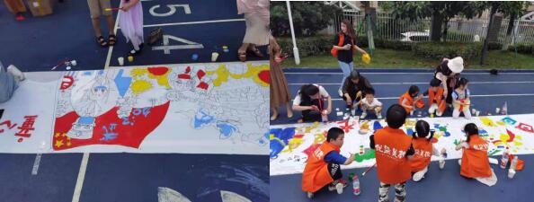 在現(xiàn)場(chǎng)志愿者的指導(dǎo)下,百米畫(huà)卷上畫(huà)出了金燦燦的黨徽,“縱情歌唱”的解放軍叔叔,一排排色彩斑斕的植物,與青山綠水相映成趣……兩個(gè)多小時(shí)過(guò)去了,一幅幅栩栩如生的畫(huà)面逐一呈現(xiàn),長(zhǎng)長(zhǎng)的白色畫(huà)卷變成了一件件色彩斑斕的藝術(shù)品?;顒?dòng)受到孩子及家長(zhǎng)們的一致好評(píng),不少家長(zhǎng)表示很喜歡帶孩子參與此類(lèi)活動(dòng)。