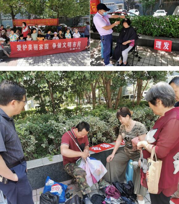 活動以小朋友高聲背出社會主義核心價(jià)值觀拉開序幕?,F(xiàn)場,志愿者免費(fèi)為老年人理發(fā),為居民修傘,磨刀,義診,刮痧,進(jìn)行反電詐宣傳?;顒蝇F(xiàn)場人來人往,氣氛活躍,居民們根據(jù)自己的需求不停地穿梭在各服務(wù)項(xiàng)目攤位。免費(fèi)理發(fā)的攤位前,志愿者理發(fā)師熟練地修剪著頭發(fā),還不時(shí)詢問居民的意見。此外,社區(qū)還結(jié)合環(huán)境日主題,開展垃圾分類知識宣傳,撿煙頭換雞蛋等活動,呼吁居民愛護(hù)環(huán)境,爭做文明市民。居民們有序地排隊(duì)體驗(yàn)各式“項(xiàng)目”,對本次活動提供的便民服務(wù)贊不絕口,直言社區(qū)活動想的周到、辦的實(shí)在,希望今后多開展類似的便民服務(wù)。