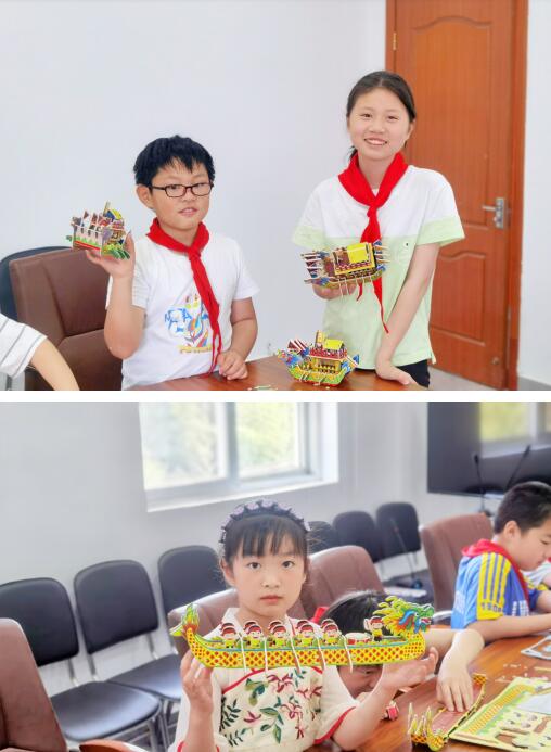 志愿者老師還通過講述端午節(jié)龍舟習俗,并與孩子們一起制作各種龍舟。