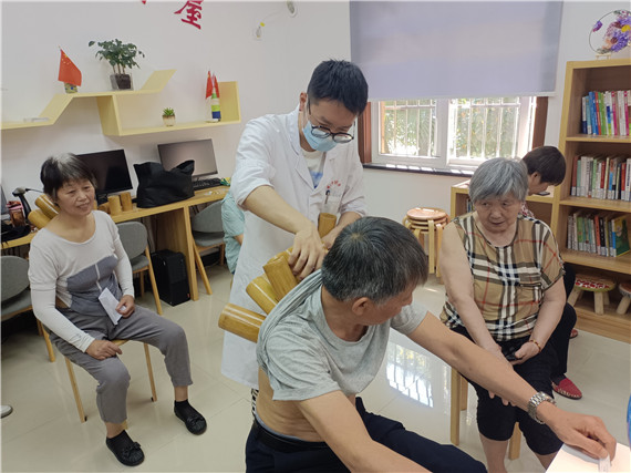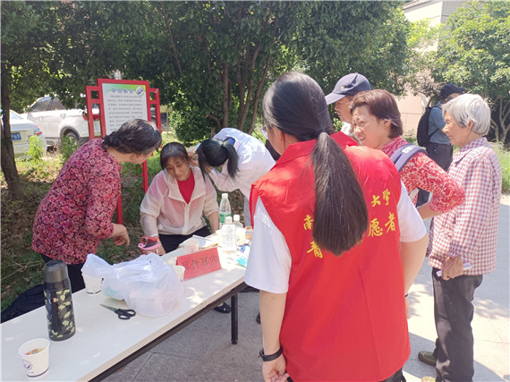 當(dāng)天活動(dòng)于上午9:00正式開(kāi)始。來(lái)自南京中醫(yī)藥大學(xué)的張曉東、牛迪、朱垚3位專(zhuān)家和20余名同學(xué)參與其中,現(xiàn)場(chǎng)為居民提供了導(dǎo)醫(yī)、把脈坐診、針灸拔罐、量血壓血糖、推拿體驗(yàn)、耳針耳穴、藥茶藥粥體驗(yàn)、健康宣傳等系列服務(wù),零距離關(guān)注群眾身體狀況、舒緩身體部位酸痛、解答疾病問(wèn)題的同時(shí),進(jìn)一步普及了中醫(yī)藥健康知識(shí),增強(qiáng)了居民群眾的健康意識(shí)。