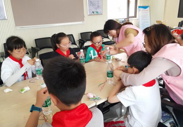 近日,南京市棲霞區(qū)燕子磯街道電瓷社區(qū)便民服務(wù)中心關(guān)工委端午節(jié)教同學們編七彩鴨蛋繩。