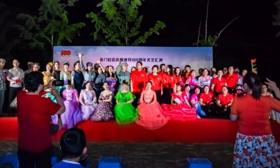 在新時代文明實踐站,一群穿戴不同著裝的居民集聚一堂,無論是演員還是觀眾,個個滿是笑臉,在主持人的引導(dǎo)下,由舞蹈演員帶來的熱舞,拉開了“崢嶸百年,不忘初心”慶祝中國共產(chǎn)黨成立100周年文藝匯演的序幕。