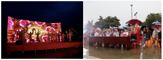 文藝匯演在開(kāi)場(chǎng)舞《中國(guó)紅》的優(yōu)美舞姿中拉開(kāi)序幕。匯演形式豐富多樣,有深入人心的詩(shī)歌朗誦,朗朗上口的快板《天然村防控疫情》,還有紅色主題的舞蹈《花鼓聲聲慶百年》、打蓮廂《江南女子打蓮廂》、舞蹈《山野的風(fēng)》等。大合唱《沒(méi)有共產(chǎn)黨就沒(méi)有新中國(guó)》唱出了天然村人的精氣神,也唱出了天然村全體黨員為群眾做好服務(wù)的決心。演員們唱著誠(chéng)摯的歌,跳著歡快的舞,帶領(lǐng)現(xiàn)場(chǎng)觀眾一同穿越歷史的烽煙,重溫黨的光輝歷程。活動(dòng)中還穿插進(jìn)行了黨史學(xué)習(xí)互動(dòng)問(wèn)答,現(xiàn)場(chǎng)氣氛十分熱烈,觀眾紛紛舉手,踴躍參與。通過(guò)這種互動(dòng)方式,不僅提高了活動(dòng)的趣味性,也使得黨史知識(shí)再次深入人心。精彩的表演表達(dá)出人民群眾對(duì)美好生活的向往及對(duì)中國(guó)共產(chǎn)黨百年華誕的美好祝愿。“今天的演出很精彩,深情謳歌了建黨100年的豐功偉績(jī),演繹了代代相傳的革命精神,極大地豐富了我們的精神文化生活,我覺(jué)得非常有意義。”村民李女士激動(dòng)地說(shuō)道。
