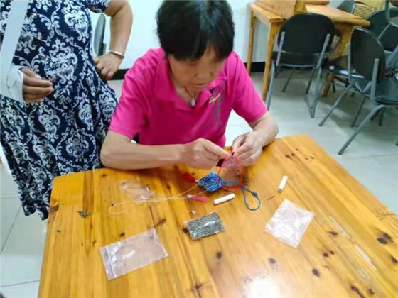 不一會兒,居民們就陸續(xù)來到了居家養(yǎng)老服務站,大家有的包粽子、有的做香囊,叔叔阿姨們在一起有說有笑,其樂融融。很快,在大家的努力下,粽子包好了,香囊也做好了,接下來就是大家最喜歡的游戲環(huán)節(jié)。許多叔叔阿姨看到眼前的“瓶子”都有些疑惑,在時間銀行志愿者的解釋后,大家也是明白了游戲的規(guī)則,就是把箭投入壺里,投壺也是中國古代的傳統(tǒng)文化。張阿姨第一個舉手參加,在她的帶領下,其他居民也踴躍參加活動,活動的獎勵就是剛才做的香囊。在經(jīng)過一輪激烈的較量后,李阿姨贏得了第一名的好成績,而第一個上場的張阿姨也得到了第三的成績。在居民們和時間銀行志愿者的共同努力下活動圓滿結(jié)束。