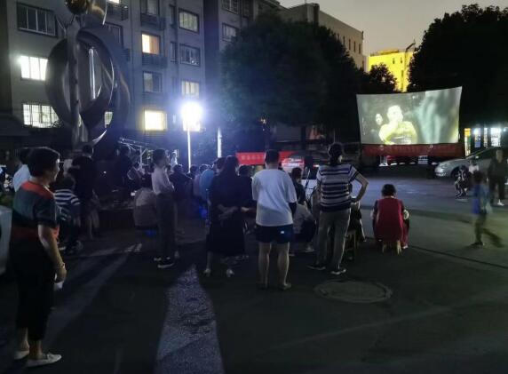 晚飯后,社區(qū)的許多老人、孩子、年輕的父母協(xié)朋伴友來觀看電影。獨特的露天觀影,涼爽的夏季晚風,泛舊的電影屏幕都讓居民們新奇不已,大家看的津津有味,隨著劇情的發(fā)展時而大聲喝彩,時而感動落淚,時而會心一笑,完全融入了電影的情節(jié)里。除了播放電影外,社區(qū)還加入了紅色故事宣傳片,用動人的黨史故事向人們傳遞不忘初心、砥礪前行的黨性情懷。
