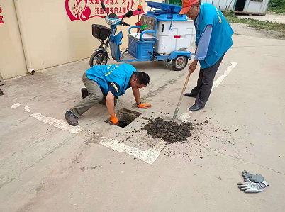 當(dāng)天,城治委公眾委員與基干民兵共同參與,對于社區(qū)內(nèi)排水窨井,進行全面清理,排水窨井一旦出現(xiàn)淤泥堆積,很有可能導(dǎo)致社區(qū)內(nèi)澇發(fā)生,嚴重影響社區(qū)居民日常生活,所以需要及時清理排水窨井,基干民兵與城治委公眾委員,拿著鐵鍬、錘子撬開窨井蓋,清理淤泥堆積,確保排水暢通。對于破損嚴重的窨井蓋,大家將窨井蓋撬開疏通后,換上新的窨井蓋,周邊破損嚴重的基本用水泥重新筑好,經(jīng)過大家一起努力下,窨井淤泥被清理一空。