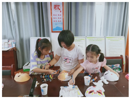 “你們知道這些臉譜都有哪些故事嗎?”“紅色的代表忠貞,是英勇人物的性格,比如關(guān)公。”在志愿者的引導(dǎo)下,孩子們玩起了臉譜故事接龍游戲,不同顏色代表不同的性格,也有相應(yīng)的人物作為代表。“這既能增長知識,鍛煉動手能力,還能讓孩子們充分感受到中國傳統(tǒng)文化的魅力。”志愿者說道。