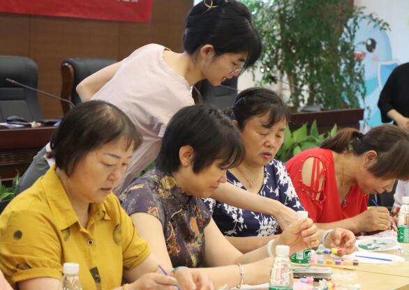 隨后,社區(qū)志愿者為大家介紹了團扇的文化背景及制作方法,從構(gòu)圖到制作,大家都有條不紊的進行,時不時互相交流,氣氛十分的活躍。經(jīng)過半小時的努力,花朵、蝴蝶、綠葉在團扇上展現(xiàn)出它們獨特的風(fēng)采,原本空空如也的團扇瞬間花團錦簇,漂亮極了。一幅幅充滿創(chuàng)意的團扇作品躍然扇上,素雅的團扇在大家手中重新煥發(fā)生機,被賦予與眾不同的意義?;顒咏Y(jié)束后,大家拿著自己制作的成品,紛紛合影留念。
