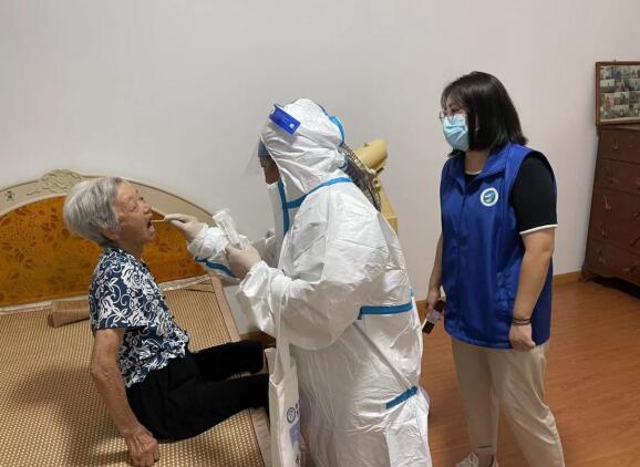 近日,南京市江寧區(qū)湖熟街道耀華社區(qū)網(wǎng)格員上門對社區(qū)年老、失能老人進行核酸檢測的采樣工作,確保核酸檢測全覆蓋。