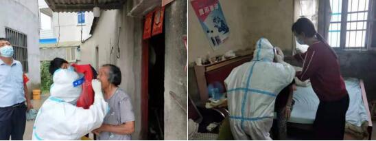 隨核酸檢測走向深入,錢家村行動(dòng)不便的老人引起了醫(yī)護(hù)人員和錢家村工作人員的特別注意。一些老人因重病在床,不方便行走。針對這一情況,尹家志同志決定帶著醫(yī)護(hù)人員上門給老人做核酸檢測,真正做到全覆蓋,不落一戶、不漏一人。大家?guī)е鴻z測試劑敲開了老人的家門,登記信息、消毒、核酸檢測采樣,整個(gè)流程老人及家人十分配合,很快就完成了老人的核酸檢測采樣工作。老人的家人將醫(yī)護(hù)人員送出家門,并且表示給錢家村工作添了麻煩,特別感謝他們能夠到家里來做核酸檢測,讓大家更安心。