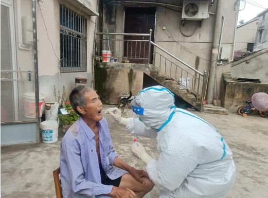 “請(qǐng)大家提前出示健康碼、身份證!”“請(qǐng)大家間隔一米距離,有序排隊(duì),不要插隊(duì)!”……核酸檢測(cè)現(xiàn)場(chǎng),該村工作人員們用“小喇叭”引導(dǎo)前來采樣的居民們進(jìn)行各項(xiàng)檢測(cè)工作。該村還在現(xiàn)場(chǎng)設(shè)置一米間隔線,讓居民們?cè)谂抨?duì)時(shí)保持一定的距離,從而保證大家的人身安全。對(duì)于一些無法前往集中檢測(cè)點(diǎn)的老年人以及殘疾人等特殊群體,該村便對(duì)其給予“特殊照顧”,通過線上電聯(lián)和線下入戶走訪等方式,詳細(xì)登記他們的基本信息和家庭住址,帶領(lǐng)醫(yī)護(hù)人員親自前往他們家中,為他們提供核酸檢測(cè)上門服務(wù)。